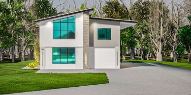 This involves designing the overall layout and structure of the home, including floor plans, exterior elevations, and roof design. Tailored design solutions for clients looking to build a custom home.